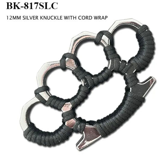 SILVER METAL KNUCKLE WITH CORD WRAP DIA: 2.75″ X 4.6″ WEIGHTS: 5.5 OZ / 155G THICKNESS: 12MM