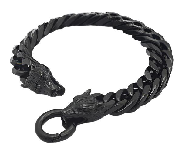 Black wolf head Stainless steel bracelet