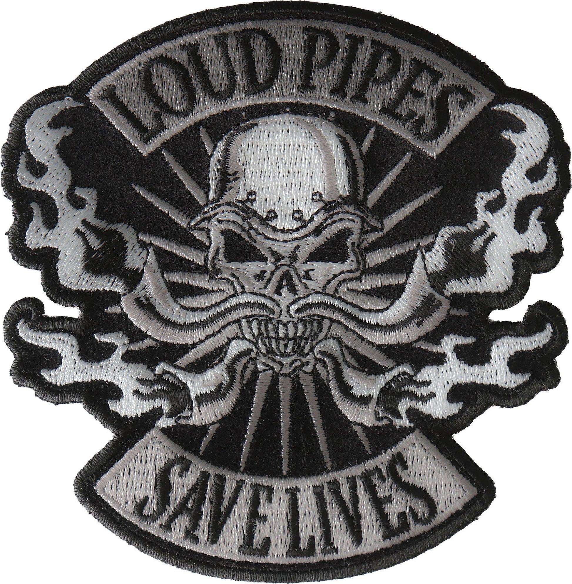 P#3284- Loud pipes save lives skull with flames