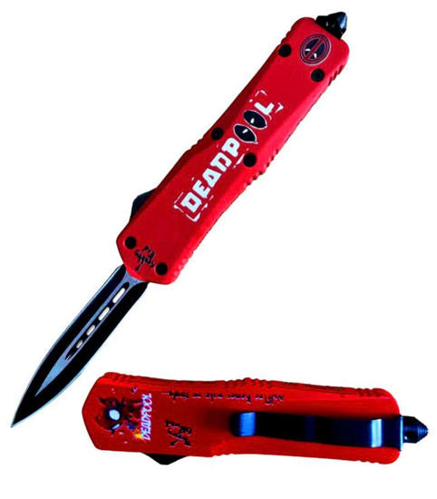 DELTA FORCE USA 5.5″ CLOSED, 9″ OVERALL, OTF KNIFE.BLACK/RED STAINLESS STEEL DAGGER BLADE, BLACK ZINC ALLY HANDLE WITH MOLLE NYLON SHEATH